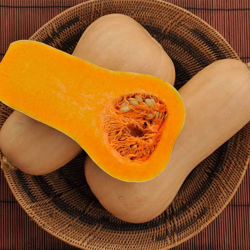 Hibrid mediu timpuriu de dovleac Butternut, fructe crem cu pulpă portocalie, greutate 0,8-1,2 kg, potrivit pentru consum proaspăt și prelucrare.