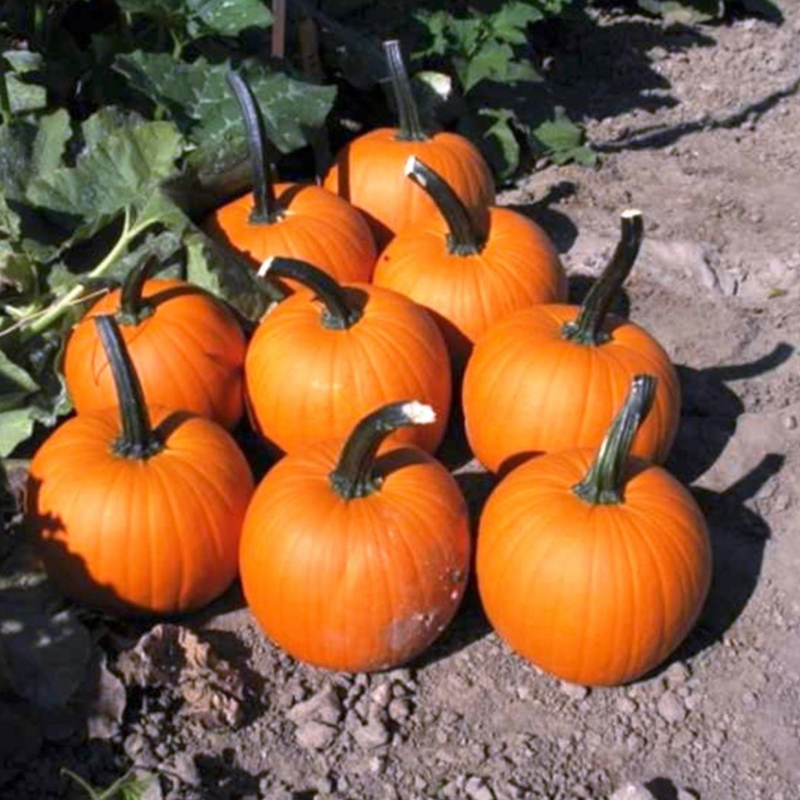 Hibrid de dovleac placintar, fructe rotunde portocalii, greutate 3,5-4 kg, productivitate ridicată.
